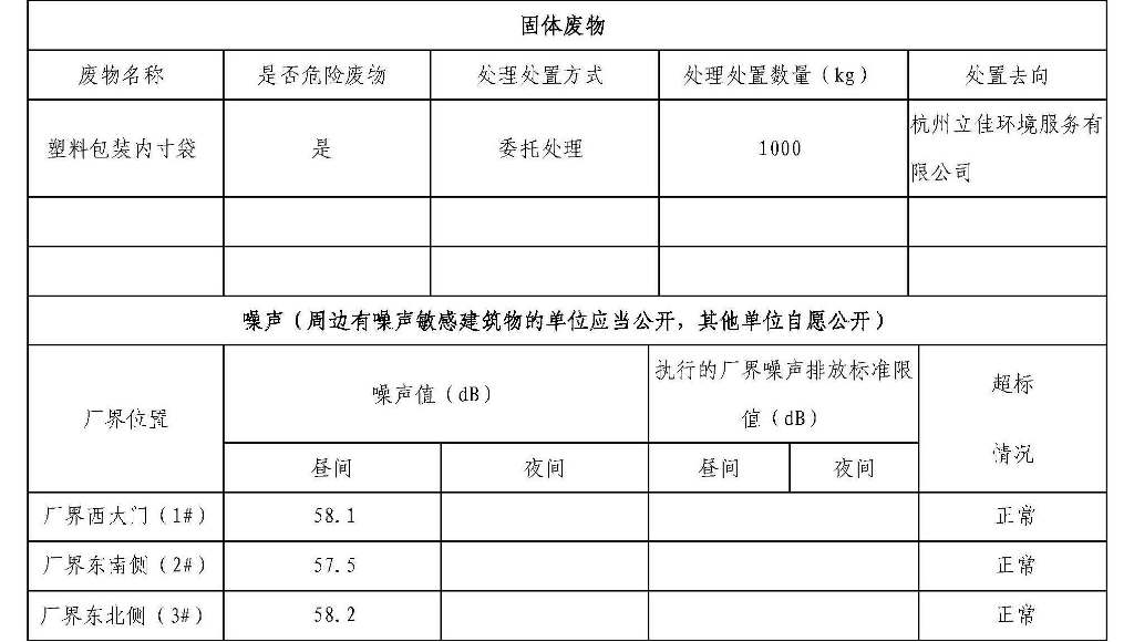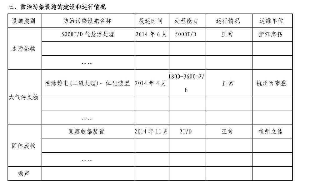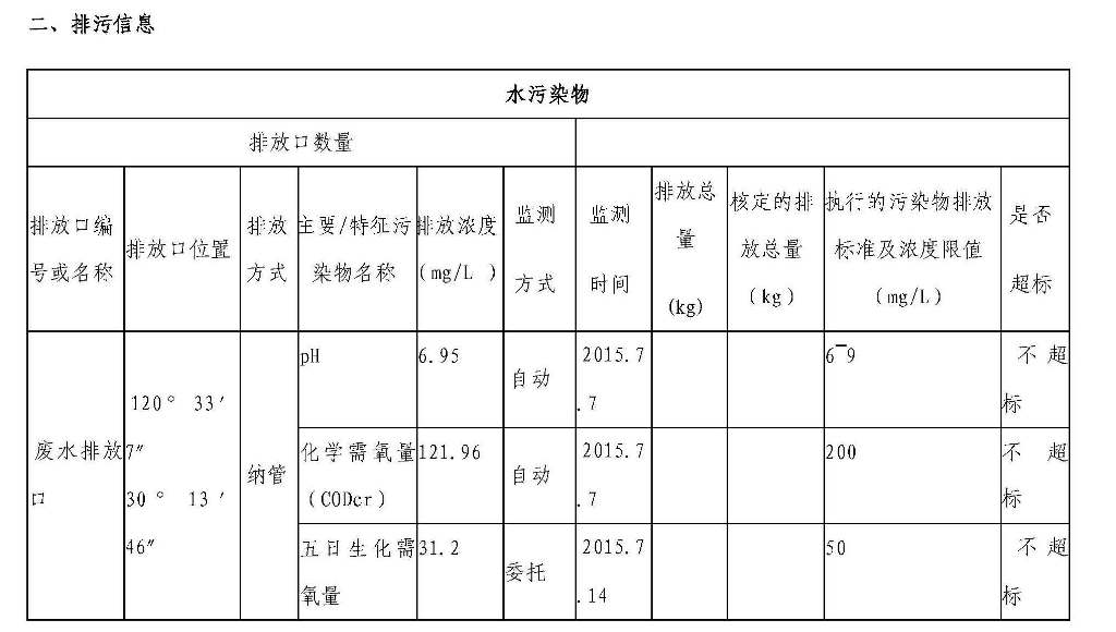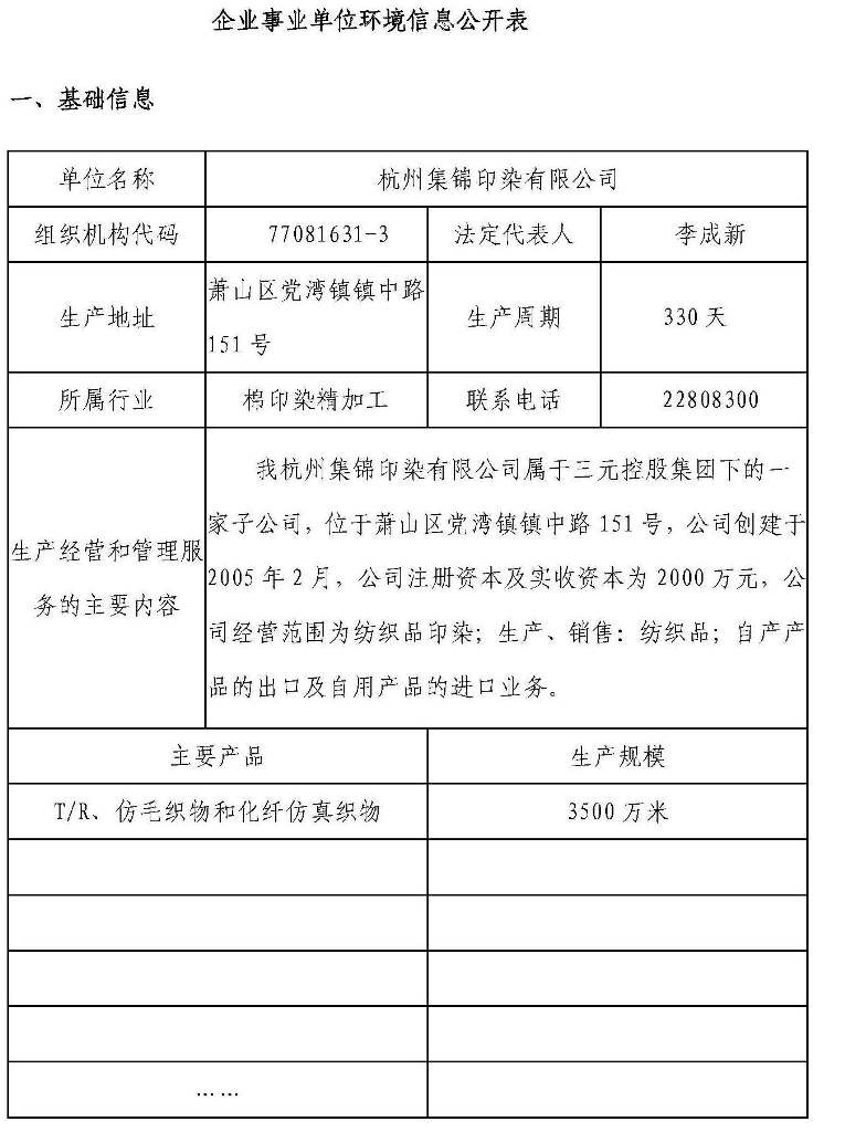 杭州集錦印染有限公司環境信息公開表