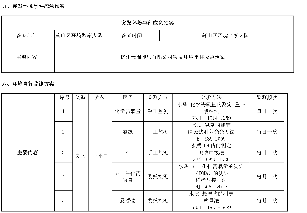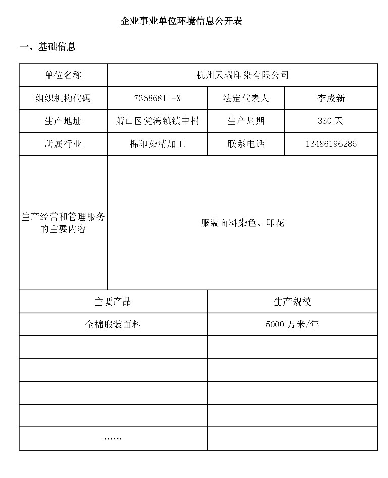 杭州天瑞印染有限公司環(huán)境信息公開表