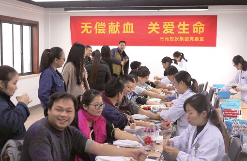 11月22日,三元控股集團有限公司黨委聯合杭州市蕭山區獻血辦公室在集團大樓開展 “無償獻血,關愛生命”主題獻血活動。此次獻血活動將在一定程度上緩解目前我區臨床用血緊張的局面。