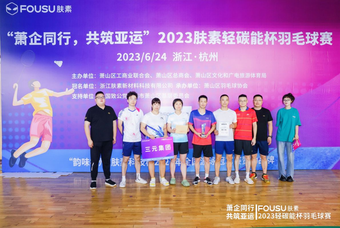 6月24日,正值端午假期的最后一天。為迎接亞運會在杭州舉辦,確保“亞運興城,全民共享”,在蕭山體育中心舉辦了蕭山區民營企業羽毛球混合團體賽。在比賽過程中,三元運動健兒們凝心聚力,充分展示了他們的個人魅力和團隊精神。經過一天時間的激烈角逐,三元控股代表隊獲得了蕭山區“膚素輕碳能杯”企業組第三名。他們在球場上揮灑汗水、賽出風格、賽出水平,以蓬勃昂揚的斗志共迎亞運,同享運動之趣,取得了運動成績和精神文明雙豐收。